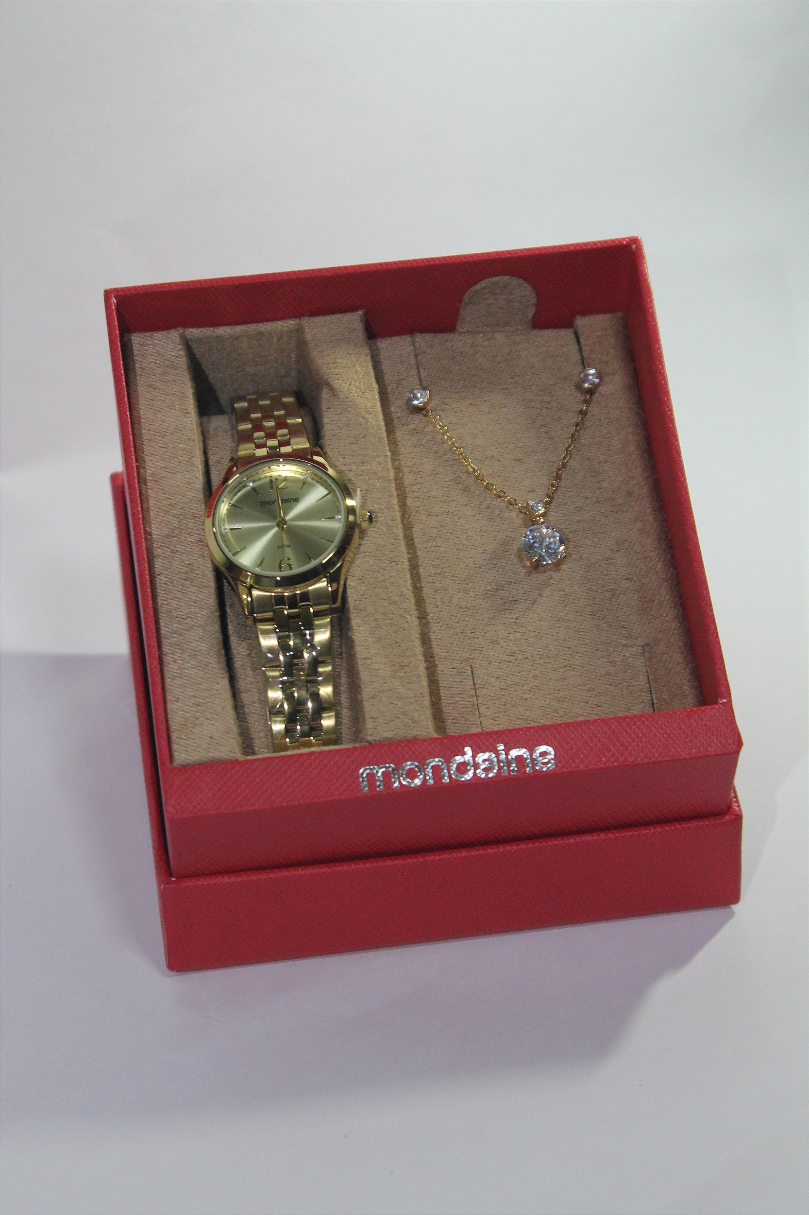 Relógio Kit Mondaine Feminino 32737LPMKDE1K1. Acompanha Certificado de Garantia, Manual de Instruções, Embalagem Original e Nota Fiscal. Analógico, Caixa Aço Inoxidável, Pulseira Aço Inoxidável, Mostrador Dourado, Vidro Cristal Mineral, Resistência a Água 5ATM, Caixa medindo 40mm (Aprox.), Acompanha 1 Pulseira