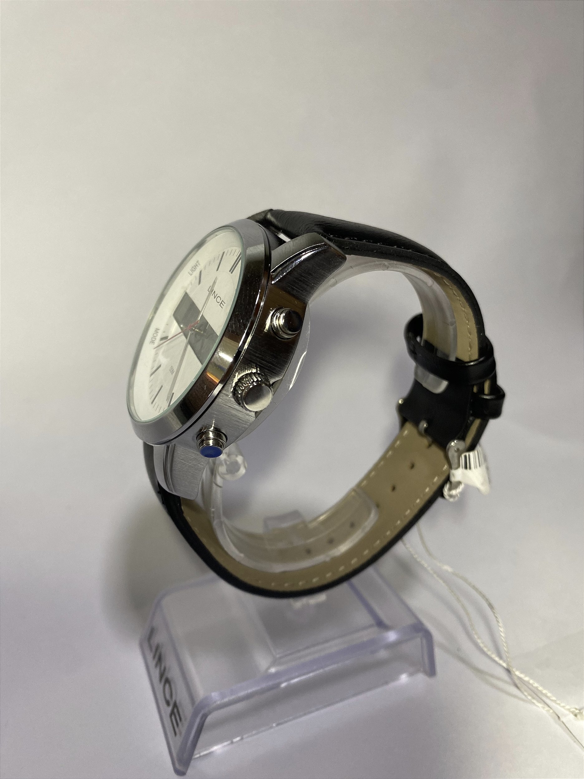 Marca:Lince Gênero:Masculino Visor:Verde, Branco Linha:Masculino Vidro:cristal mineral Funções:Calendário Pressão: Características:com caixa prata e pulseira em couro Diâmetro da Caixa:46mm